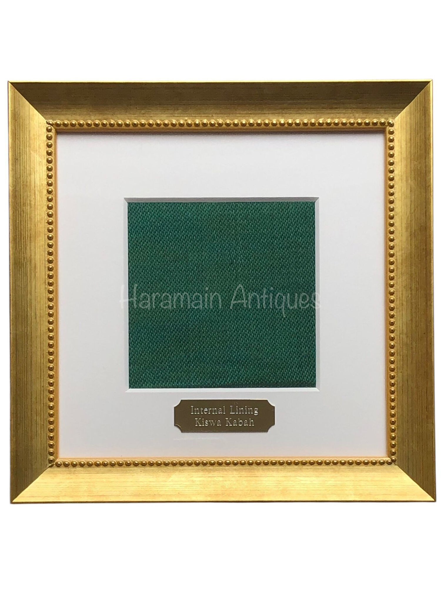 Our Kiswa is sourced from trustworthy, reputable and well-established antique dealers in Saudi Arabia. Each kiswa piece that arrives is reviewed and checked for it's condition, weaving style and thread count to ensure what we offer is the genuine article. The kiswa is then presented to a Museum in Makkah for further review and authentication. Once approved the kiswa is then certified and shipped over to us in the UK. Once it is received, we cut it by hand and offer it to our customers in an elegant gold frame.