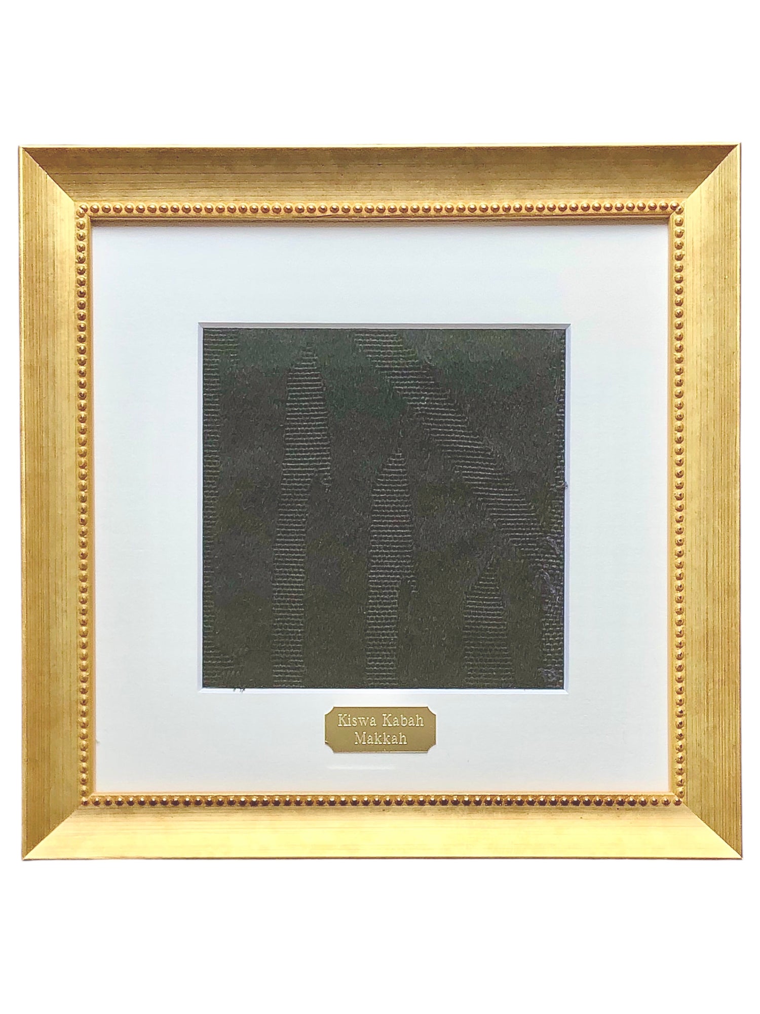 Our Kiswa is sourced from trustworthy, reputable and well-established antique dealers in Saudi Arabia. Each kiswa piece that arrives is reviewed and checked for it's condition, scent, weaving style and thread count to ensure what we offer is the genuine article. The kiswa is then presented to a Museum in Makkah for further review and authentication. Once approved the kiswa is then certified and shipped over to us in the UK. Once it is received, we cut it by hand and offer it to our customers in an elegant two tone gold frame.