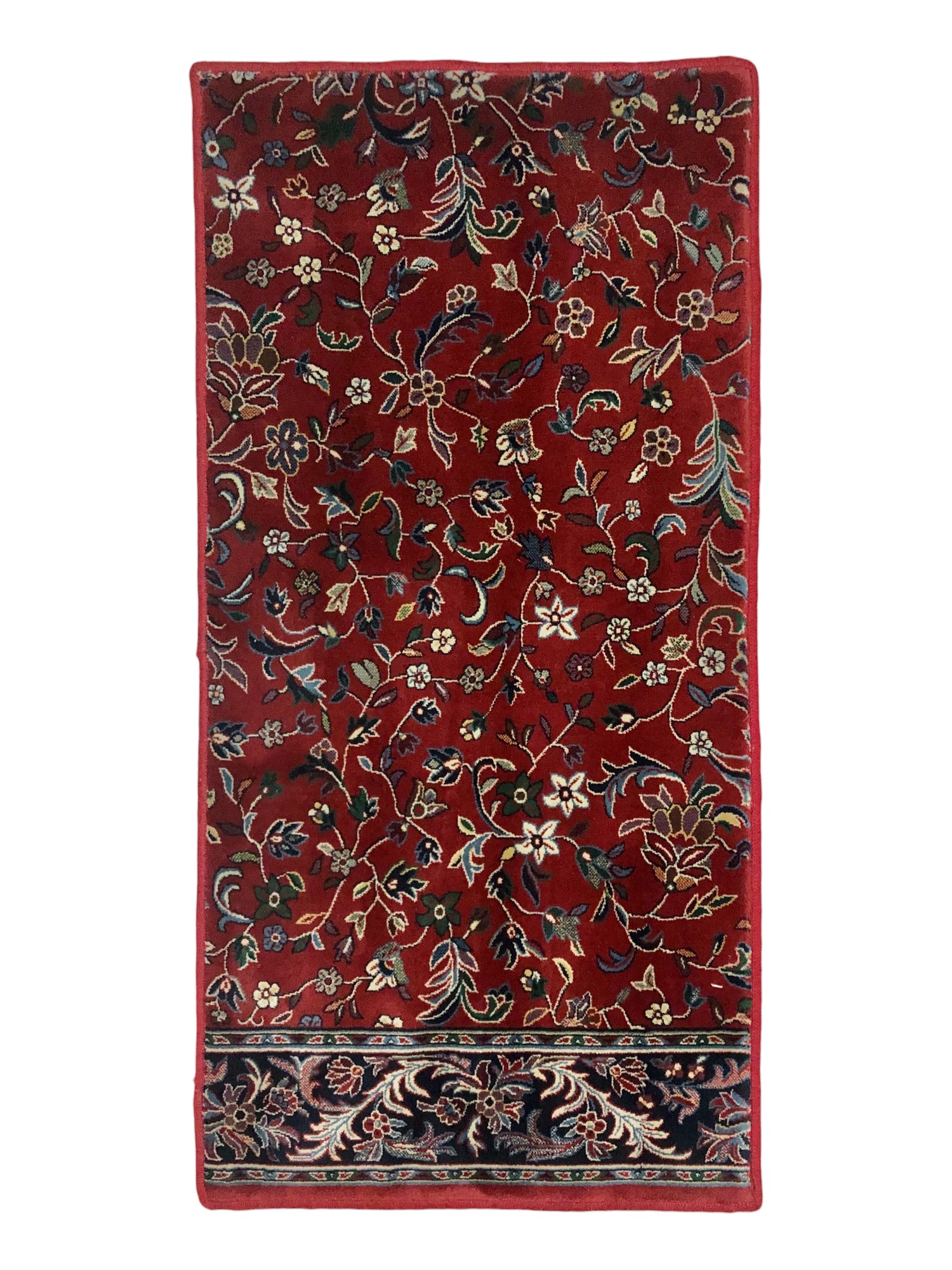 A section of the original carpet used around the Prophetic chamber and side of the home of Fatima ra. This distinguished red floral design carpet was placed on the side of the gated chamber and around the rear of the chamber including the raised platform of Tahajjud. It is an area commonly closed off to the public, especially in recent years. This particular red carpet is not used anywhere else in the Prophets mosque except for this location.