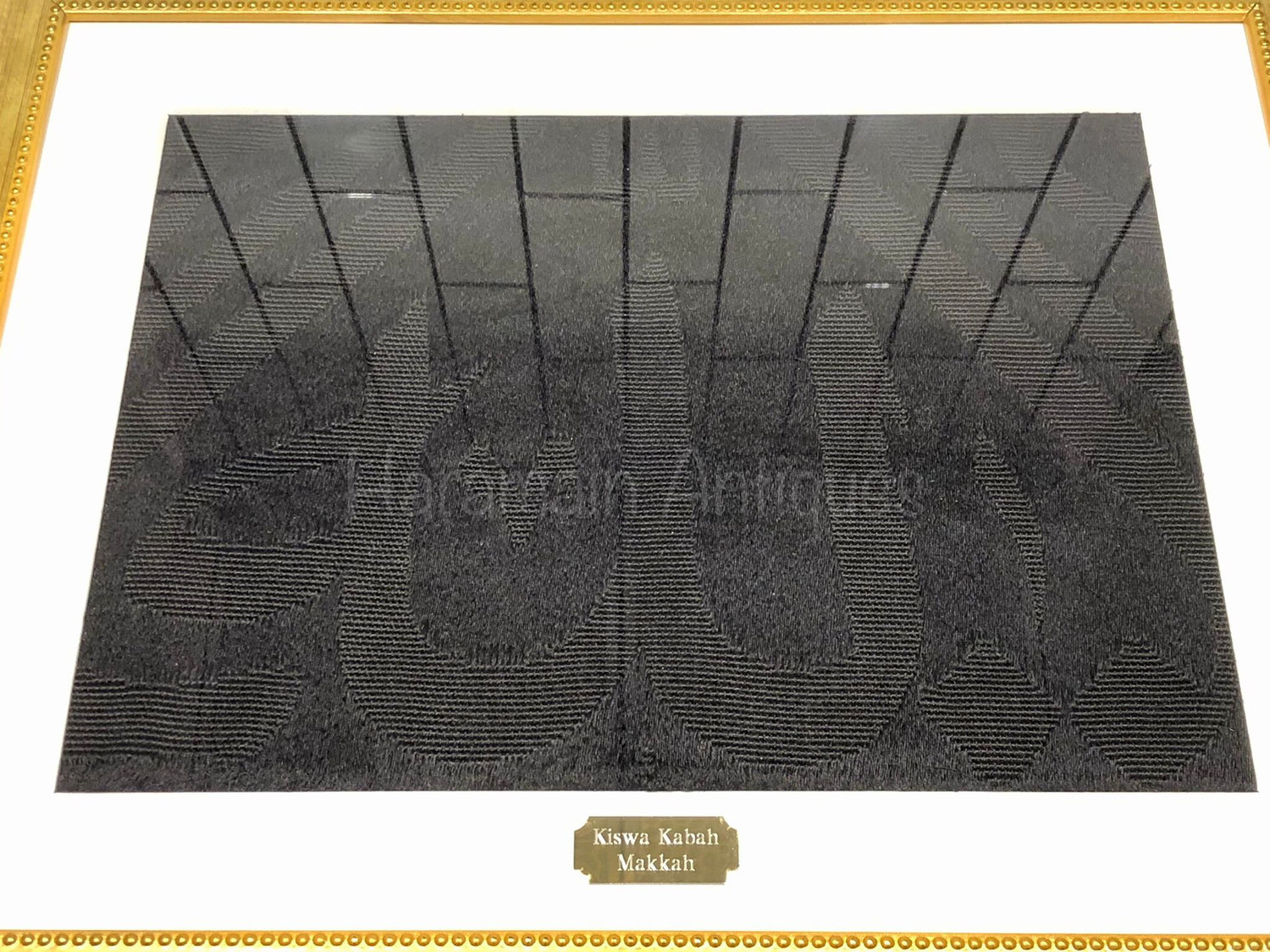 Our Kiswa is sourced from trustworthy, reputable and well-established antique dealers in Saudi Arabia. Each kiswa piece that arrives is reviewed and checked for it's condition, scent, weaving style and thread count to ensure what we offer is the genuine article. The kiswa is then presented to a Museum in Makkah for further review and authentication. Once approved the kiswa is then certified and shipped over to us in the UK. Once it is received, we cut it by hand and offer it to our customers in an elegant two tone gold frame.